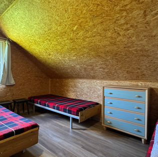 V apartmánu jsou v podkroví dvě ložnice. Jedna dvoulůžková a druhá třílůžková. V přízemí je jídelní stůl se židlemi, skříně, plně vybavený kuchyňský kout (indukční deska, nádobí, lednice, mikrovlnná trouba, varná konvice,...) a koupelna s teplou vodou a WC.